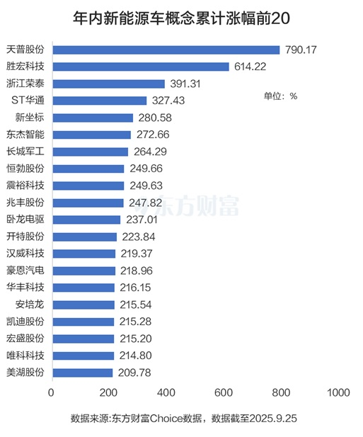 个股而言,不考虑年内上市新股,天普股份暂居新能源车概念板块的“涨幅王”位置,年内上涨790.16%。该股因一份协议转让(其中涉及一家AI芯片制造商),自8月22日至9月23日录得15连板,目前该股处于停牌核查中。