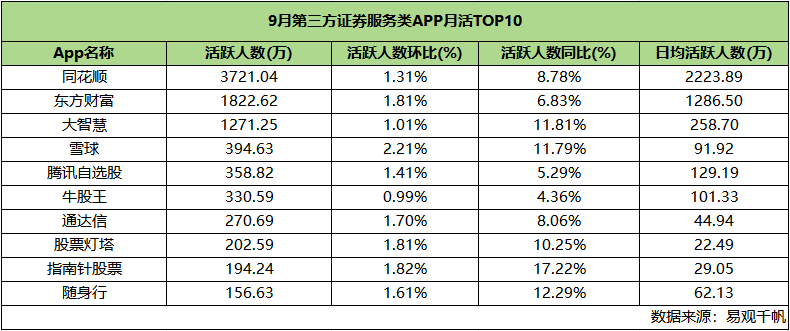 A股新开户人数的飙升,为各方证券服务类App打开了新的流量窗口。上交所数据显示,9月A股新开户数量达293.72万户,同比增长60.73%,环比增长10.83%,实现了连续第四个月的环比增长。