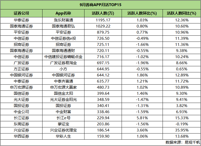 然而,从环比增幅来看,9月不同证券服务App的活跃用户规模出现分化,涨跌不一。市场人士认为,这主要源于当月市场整体处于高位震荡格局,两市成交额未能持续放大,影响了部分用户的交易频率和App使用强度。