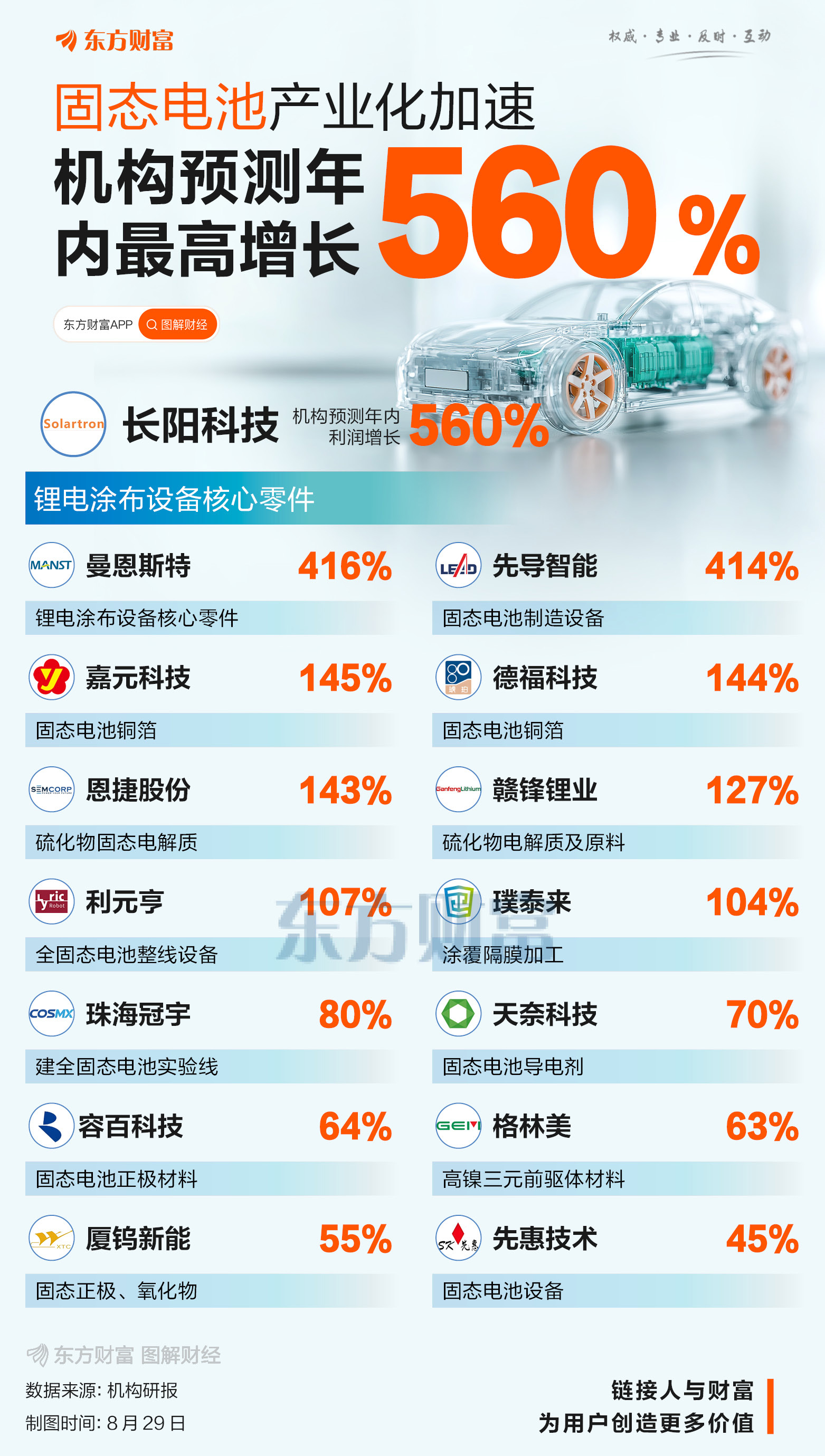 目前,动力电池头部企业如宁德时代、国轩高科、欣旺达、中创新航(03931.HK)等加速角逐固态电池量产时间,锂电产业链企业如亿纬锂能(300014.SZ)、整车企业如奇瑞(09973.HK)等,也想争夺固态电池市场份额。