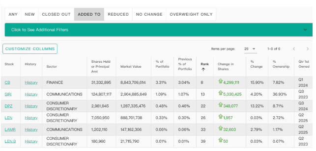 在增持方面,伯克希尔还在三季度增持了安达保险(CB)、莱纳建筑(LEN)、达美乐比萨(DPZ)、Sirius XM(SIRI)、拉马尔户外广告(LAMR)等标的。