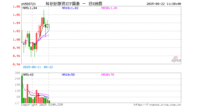 8月22日,截止午间收盘,科创创新药ETF国泰(589720)涨0.00%,报1.030元,成交额2435.61万元。科创创新药ETF国泰(589720)重仓股方面,博瑞医药截止午盘涨0.23%,百济神州涨0.05%,百利天恒跌1.50%,泽璟制药跌0.20%,艾力斯涨0.23%,君实生物涨0.93%,益方生物涨1.77%,神州细胞跌0.57%,特宝生物跌1.77%,荣昌生物跌0.44%。