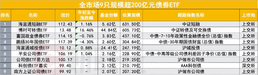 9只债券ETF规模超200亿,海富通短融ETF再度领先