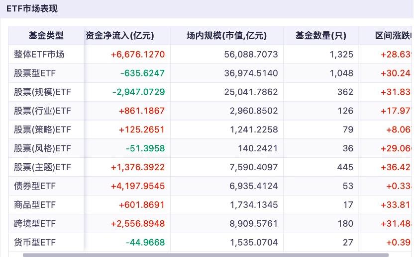 财联社10月4日讯(记者 闫军)国内ETF规模在国庆节前摸高5.6万亿元,债券ETF成为年内资金净流入最多的品种。