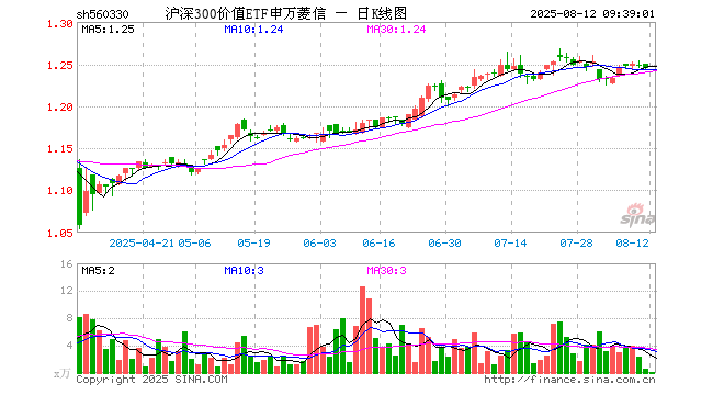8月12日,沪深300价值ETF申万菱信(560330)开盘涨0.16%,报1.247元。沪深300价值ETF申万菱信(560330)重仓股方面,中国平安开盘涨0.00%,招商银行涨0.07%,兴业银行涨0.04%,美的集团跌0.01%,中信证券涨0.20%,工商银行跌0.13%,国泰海通涨0.20%,交通银行跌0.13%,格力电器涨0.15%,农业银行涨0.00%。