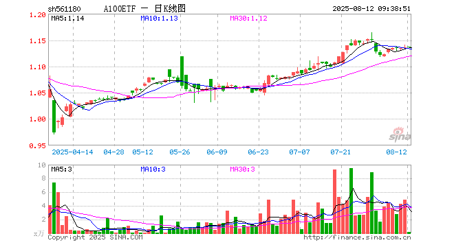 8月12日,A100ETF(561180)开盘涨0.09%,报1.137元。A100ETF(561180)重仓股方面,贵州茅台开盘涨0.28%,宁德时代跌0.06%,中国平安涨0.00%,招商银行涨0.07%,兴业银行涨0.04%,长江电力涨0.00%,美的集团跌0.01%,紫金矿业跌0.15%,比亚迪跌0.11%,中信证券涨0.20%。