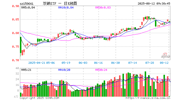 8月12日,双碳ETF(159641)开盘跌0.59%,报0.843元。双碳ETF(159641)重仓股方面,宁德时代开盘跌0.06%,紫金矿业跌0.15%,长江电力涨0.00%,比亚迪跌0.11%,万华化学跌0.62%,汇川技术涨0.05%,阳光电源涨0.09%,隆基绿能跌0.06%,TCL科技涨0.00%,中国核电涨0.00%。