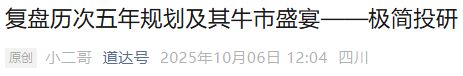 也就是说,10月底这个窗口期,我们可能会看到“十五五”规划的大概内容。这方面,我在国庆假期里谈过,详见《复盘历次五年规划及其牛市盛宴》。