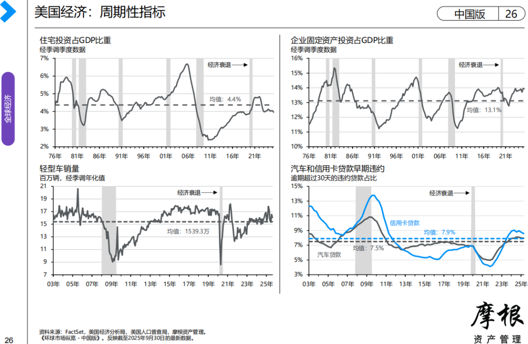 从经济基本面来看,美国实体经济整体表现保持稳健,在美联储降息后有望获得进一步支持。企业固定资产投资,尤其是在人工智能领域,增速十分迅猛,这使得企业固定资产投资占GDP的比重持续高于长期均值;轻型车的销量维持在强势区间,从侧面印证了消费市场的稳定态势。虽然就业市场新增岗位数有所下修,但失业率的上升幅度有限,主要因为反移民政策对劳动力供应的抑制,劳动力市场的供求有望保持相对平衡。