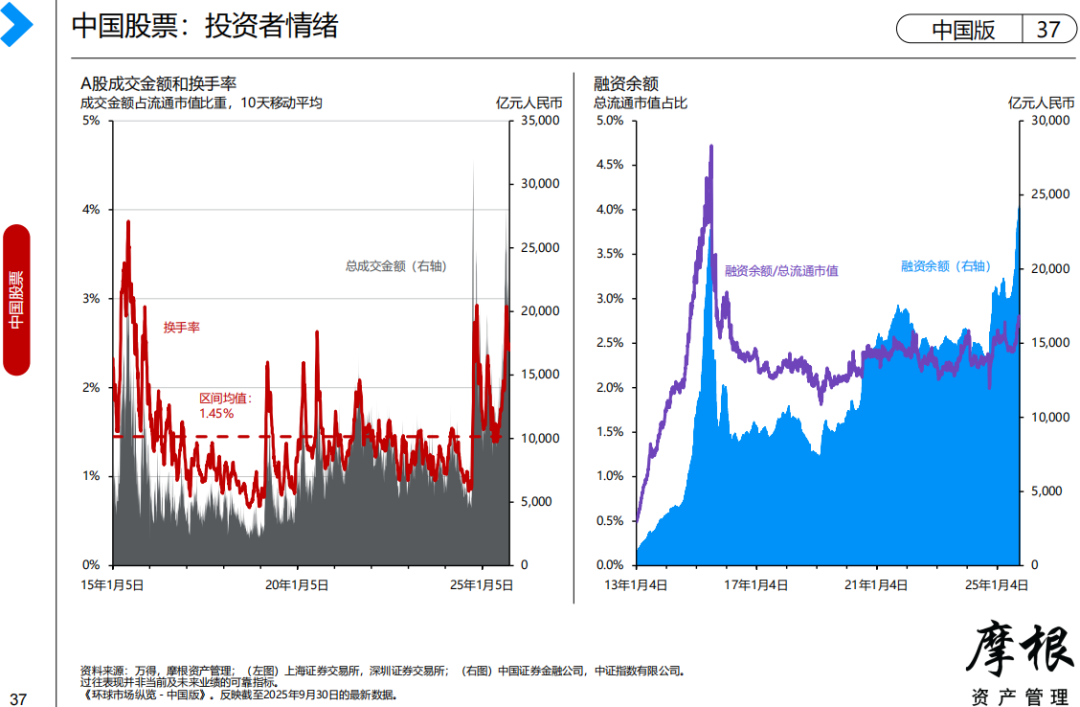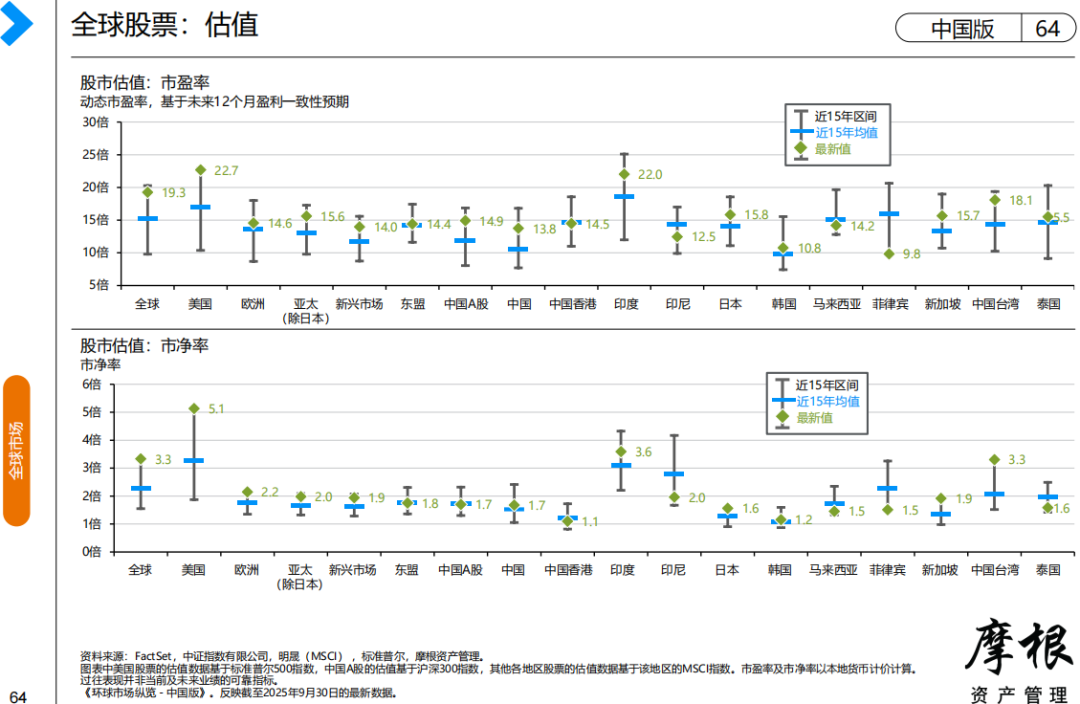 在海外市场,标普指数公司数据显示,截至2025年9月30日,标普500指数的估值维持在历史区间的顶部,而欧洲、日本等亚太股市市场虽然经历了上行周期,估值仍然较为便宜。在美国经济和市场不确定性重新上升的过程中,投资者需要对风险和配置进行再平衡,资金有望流入日本、欧洲等非美市场。