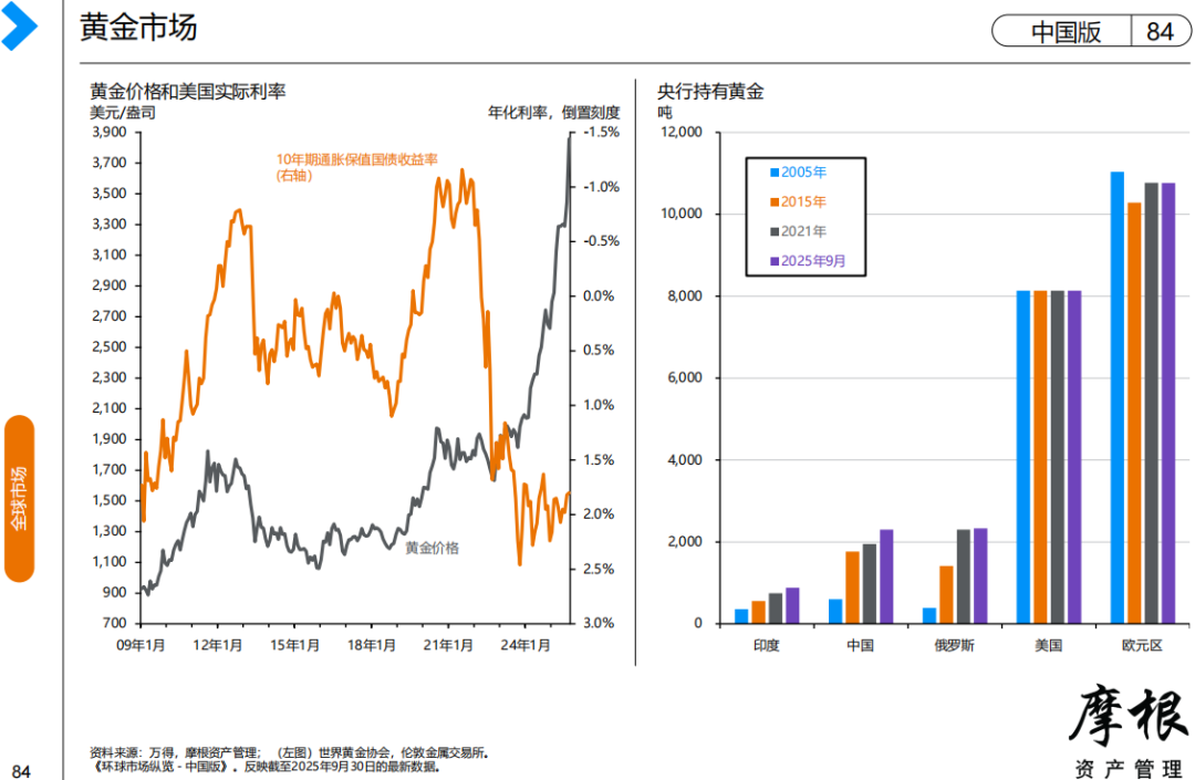 除美元之外,欧洲仍面临经济及政治上的挑战,地缘政治风险未歇,以及美国关税政策持续为全球增长前景带来阴霾,市场对主要法定货币的信心整体下行,部分央行继续提升黄金储备,突显黄金的货币属性。另外,全球资本市场波动持续,也或提升黄金作为风险对冲工具的作用。除此之外,美联储再启宽松周期,黄金价格和美国实际利率的负相关性或重新回归,均有利未来黄金走势。不过,对黄金投资或需采取更为中长期的策略,可考虑回调低吸或定投方式控制投资组合整体回撤风险。