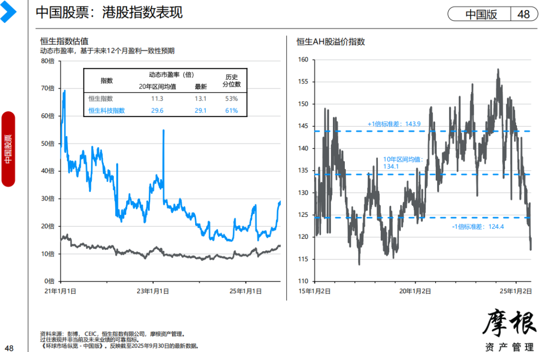 港股今年走强源于三重核心逻辑:一是来自盈利基本面的改善,相较A股,港股(剔除金融)上市公司盈利更早见底回升。二是上半年美元资产信用下行,资金向非美市场外溢的过程中,港股相较A股更容易承接相关资金。三是今年新股供给超预期,多家优质A股公司赴港上市,今年以来IPO超140亿美元,增加港股吸引力,提升港股吸引力,恒生AH股溢价指数继续收窄或是大概率事件。四是市场资金充裕,南向资金今年以来净流入超1.1万亿港币,均64亿左右大幅超越去年,加上外资被动资金持续流入,主动资金流出收窄,有利港股行情持续。