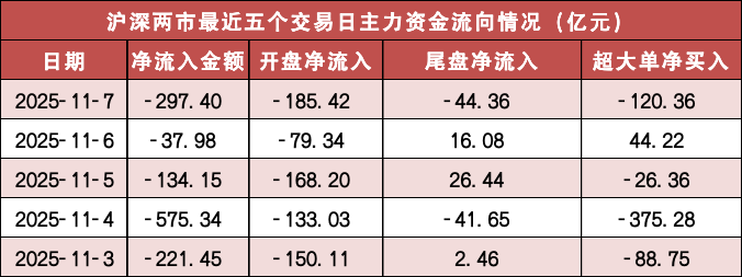 今日沪深两市主力资金开盘净流出185.42亿元,尾盘主力资金净流出44.36亿元,两市全天主力资金净流出297.4亿元。